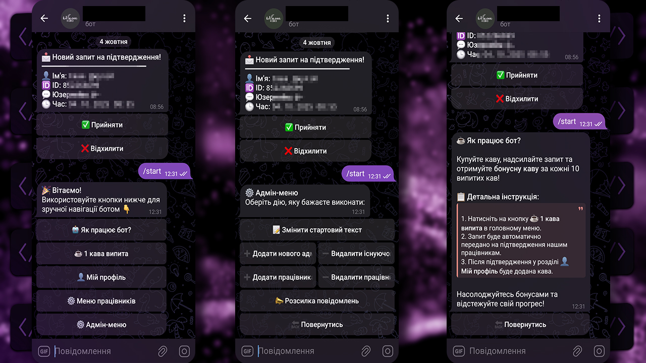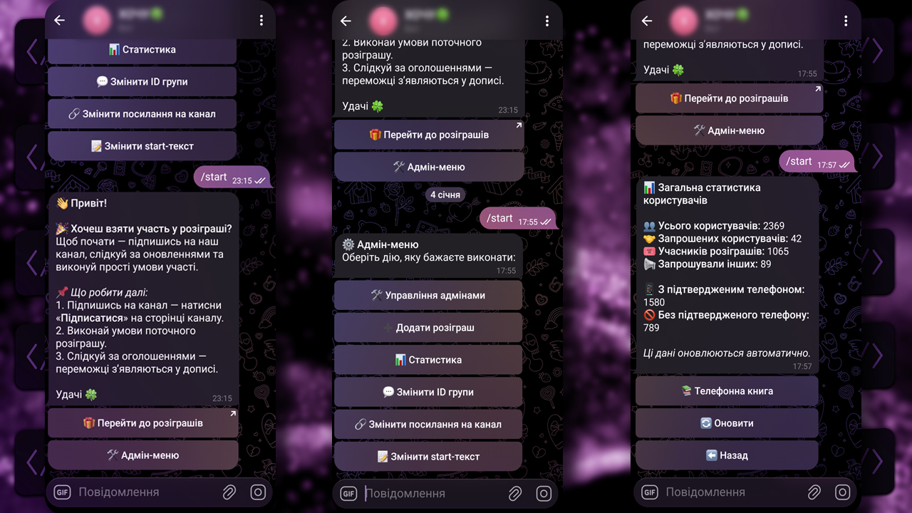 Автоматизація процесів, інтеграція з ШІ, зручна адмін-панель, статистика користувачів та багато іншого.
